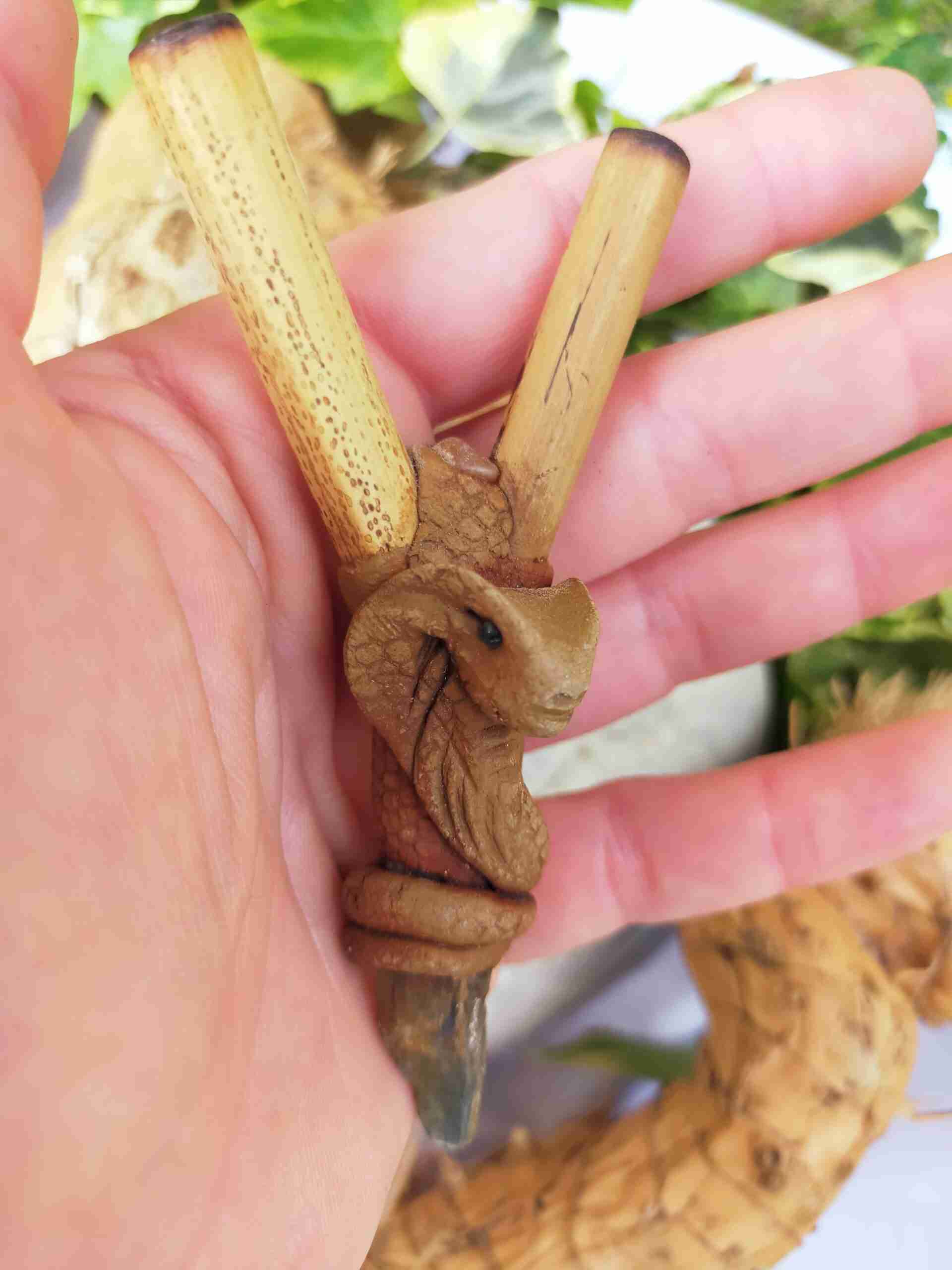 Kuripe Bambu Totem COBRA Amuleto con pietre potenti